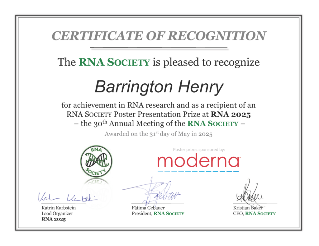 News3 weeks agoBelated Congratulations to Barrington!This announcement is a few months late, but we’re super proud of Barrington for winning a poster presentation award at the 2025 RNA Society…